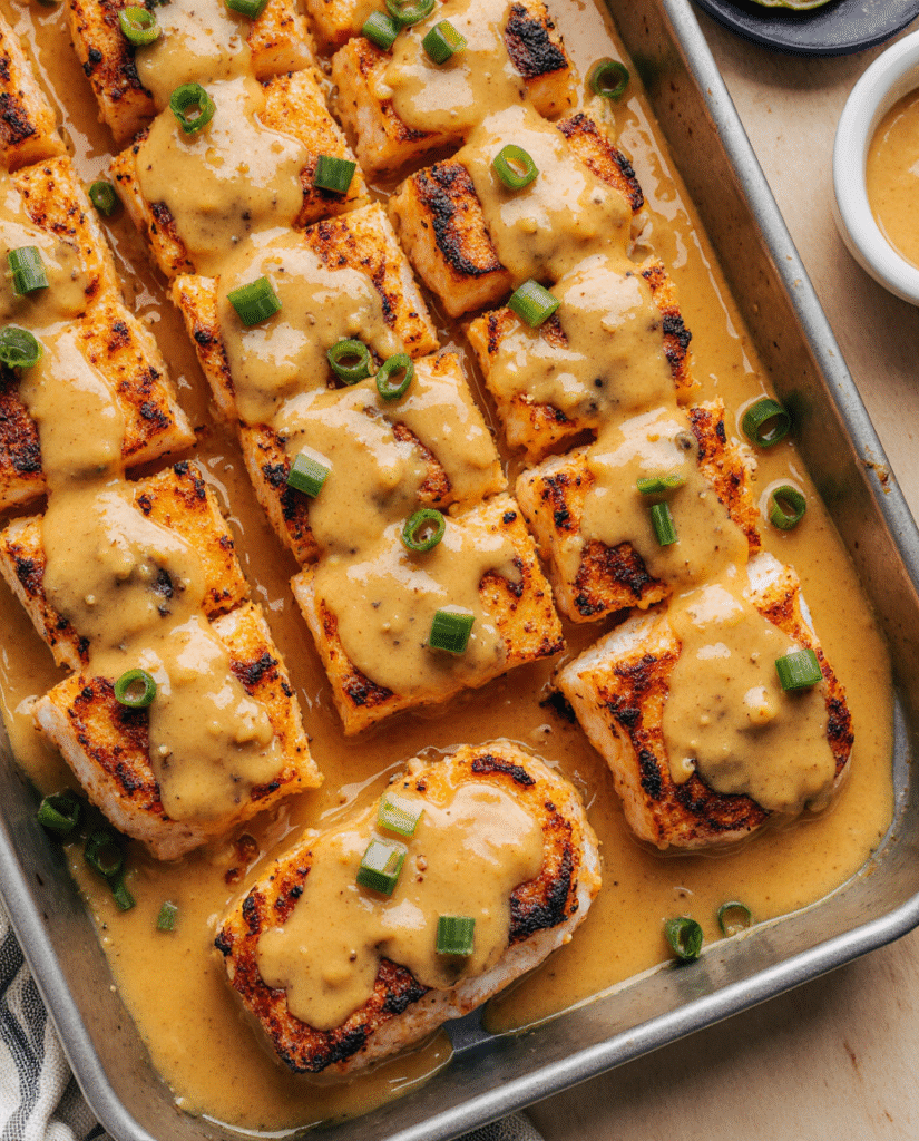 Heat olive oil in a pan over medium-high heat. Sear the salmon for 4โ5 minutes per side (depending on thickness) until golden brown and flaky.Add the sauce: