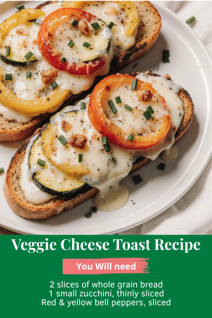 Try this quick and easy Eggie Cheese Toast recipe! Made with zucchini, bell peppers, and melted mozzarella, it's the perfect healthy breakfast or light meal. Ready in under 15 minutes!