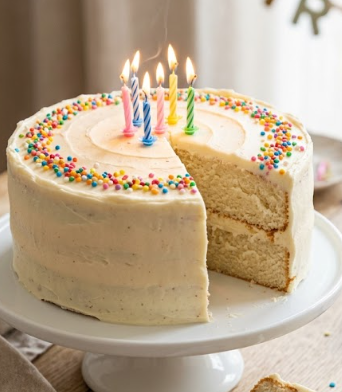 This easy vanilla birthday cake is soft, fluffy and topped with a creamy buttercream frosting—perfect for any celebration. It’s a simple, classic layer cake that looks impressive but is beginner-friendly. You can keep it minimal with sprinkles, or decorate it with fresh berries or candles for a special birthday look. It’s ideal for kids’ parties, family celebrations, or any time you want a homemade birthday cake that everyone will love.