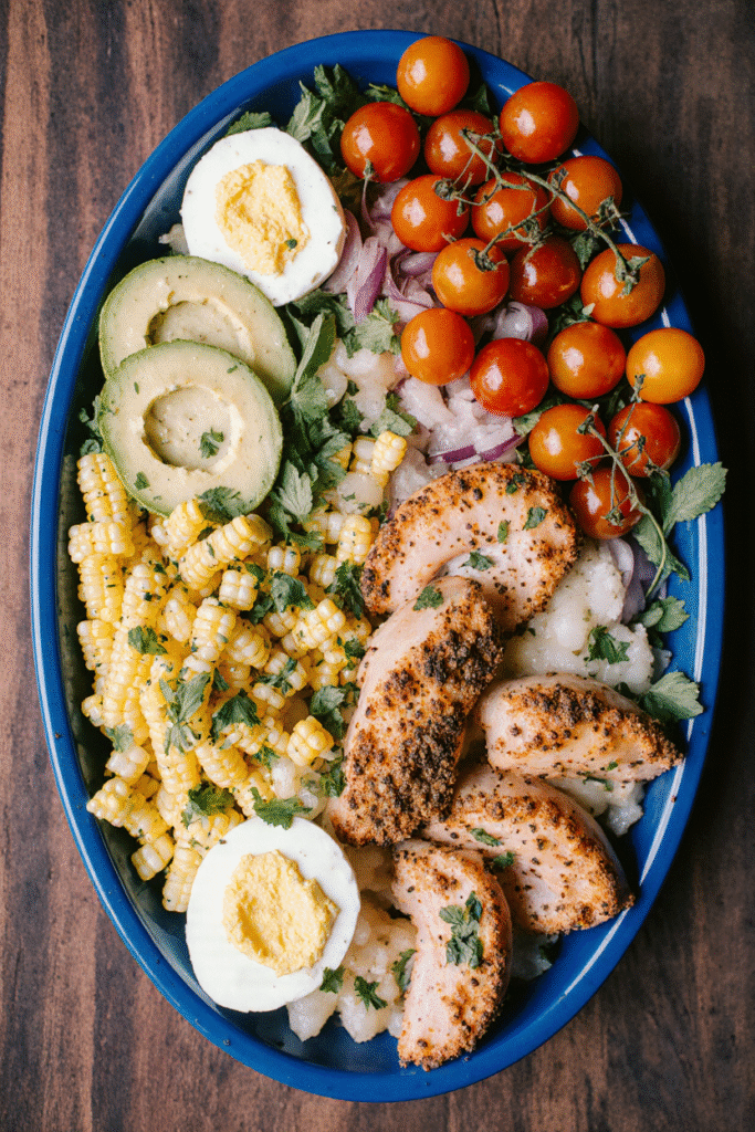 Bright, colorful, and bursting with freshness, this Salmon Avocado Egg Salad is the perfect meal for when you want something both light and satisfying. With flaky grilled salmon, creamy avocado, sweet corn, juicy cherry tomatoes, and perfectly boiled eggs, this salad delivers the ideal balance of flavor, texture, and nutrition in every bite.