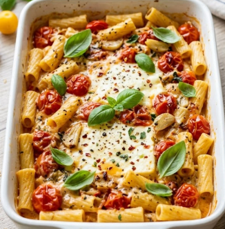 2. Bake for 20–25 minutes, or until the tomatoes are soft and bursting and the feta is lightly golden on top.