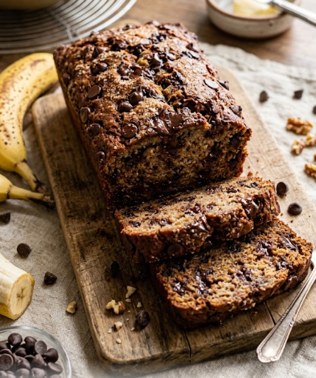 This moist chocolate chip banana bread is soft, rich in banana flavor and loaded with melty chocolate chips. It’s the perfect way to use overripe bananas and makes a great breakfast, snack or dessert. The recipe comes together in one bowl, without a mixer, and bakes into a beautiful loaf that stays tender for days. It’s a classic comfort bake that performs very well on Pinterest and is loved by both kids and adults.