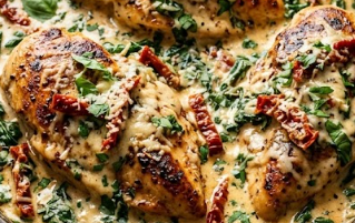 One-Pan Creamy Tuscan Chicken with Sun-Dried Tomatoes and Spinach